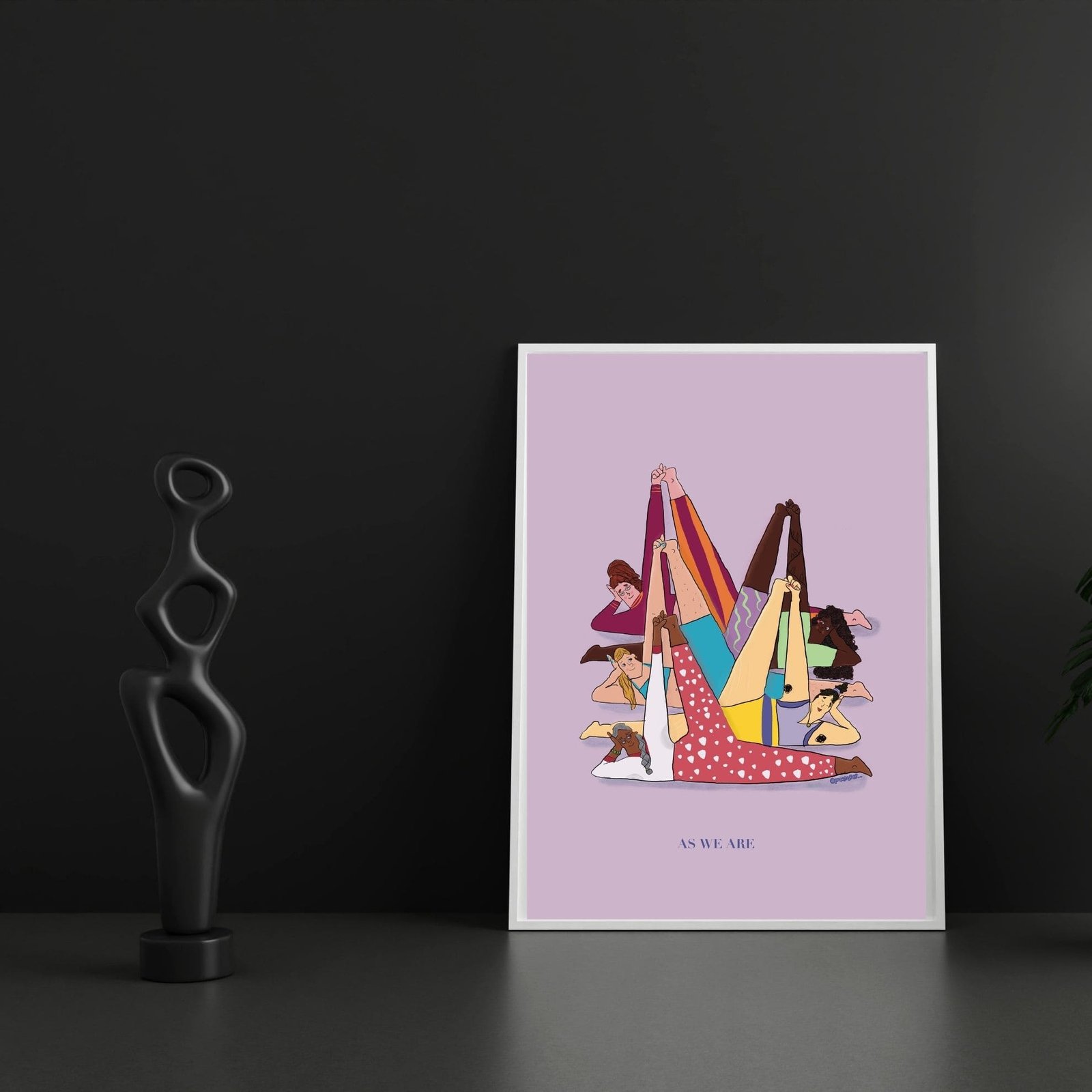 Celebrate real beauty, strength, and self-acceptance with the As We Are art print. This empowering illustration shows women moving, training, and supporting each other, all with different bodies, shapes, and stories. Each detail, from stretch marks to body hair and sweat, reminds us that we are already enough, exactly as we are.
