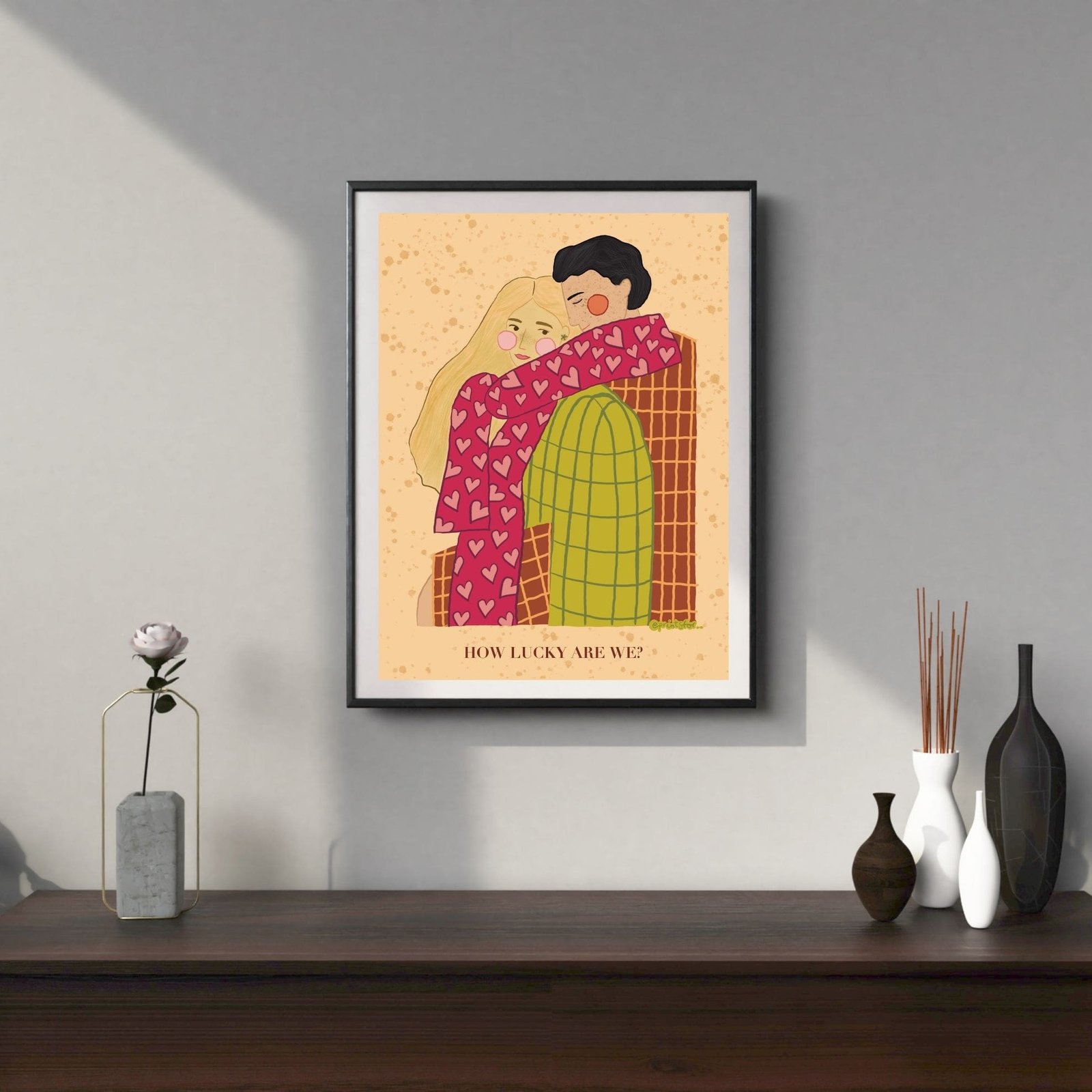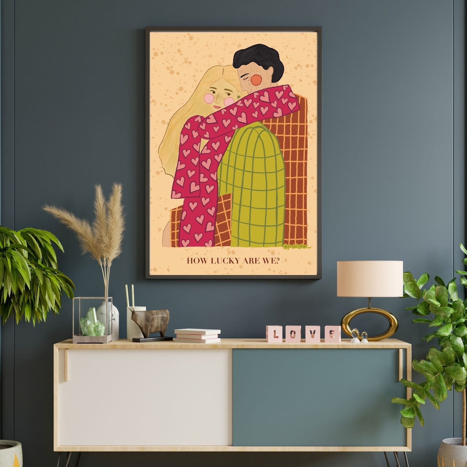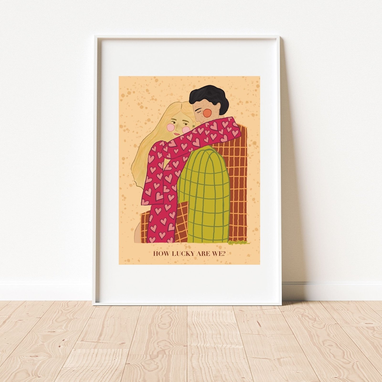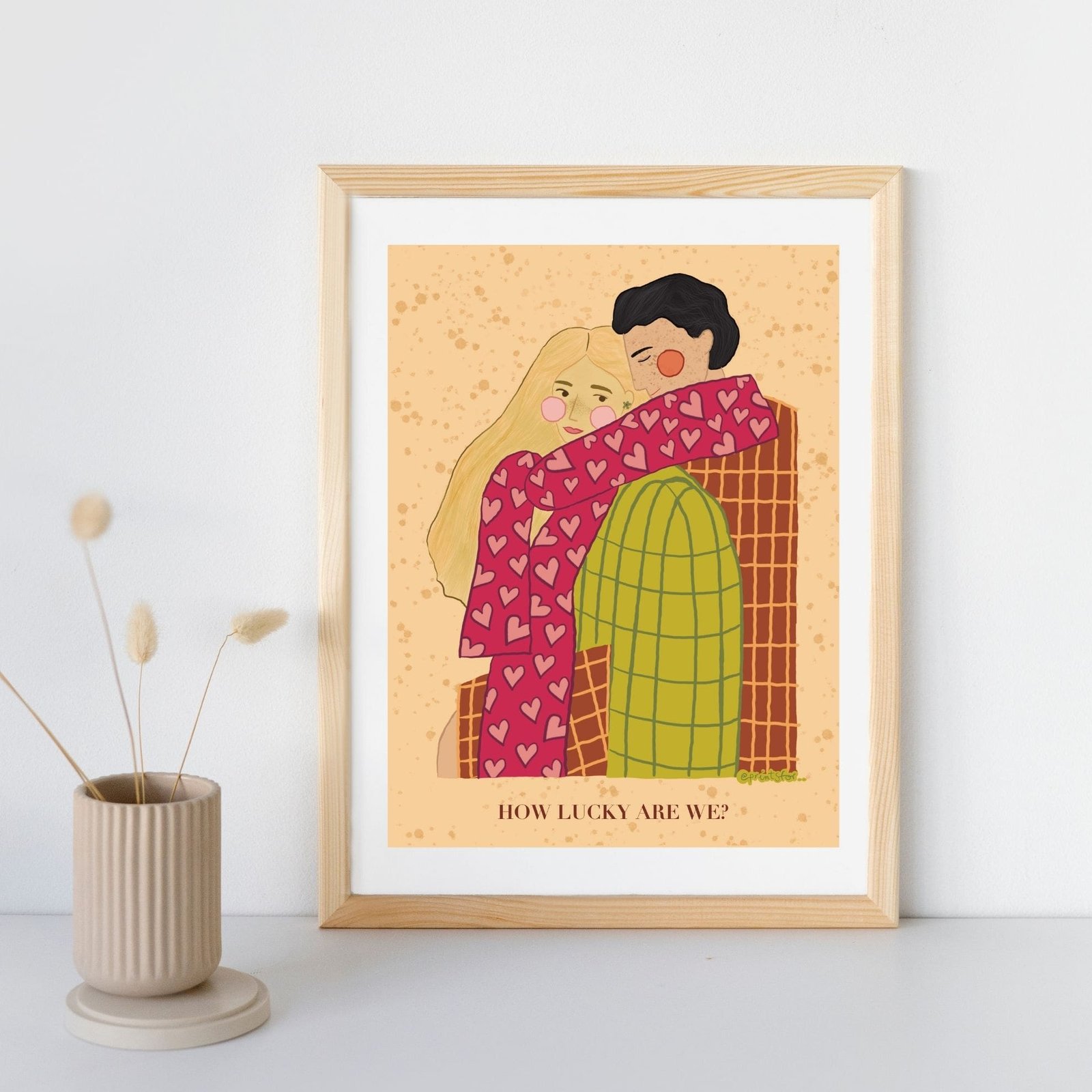 Created on iPad and digitally refined, the Better Together art print mixes emotional storytelling with a minimalist and modern design. Its soft tones and gentle composition make it perfect for adding love and comfort to your home. Moreover, the warm colors and cozy clothing bring a sense of calm and affection to any space.