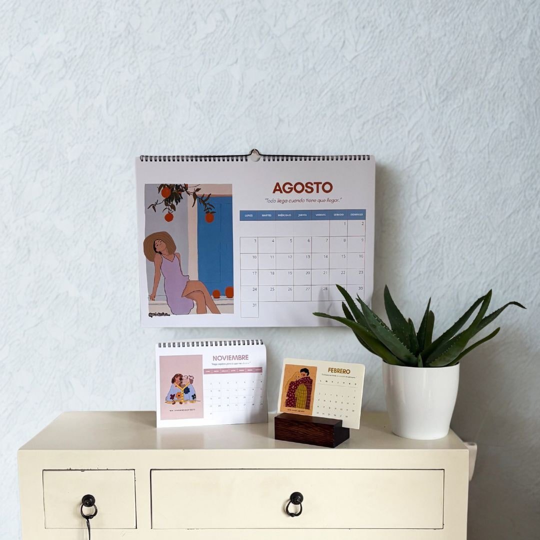 Each month features watercolor illustrations by Andrea Gandiaga, bringing soft tones and emotional warmth into your everyday life.