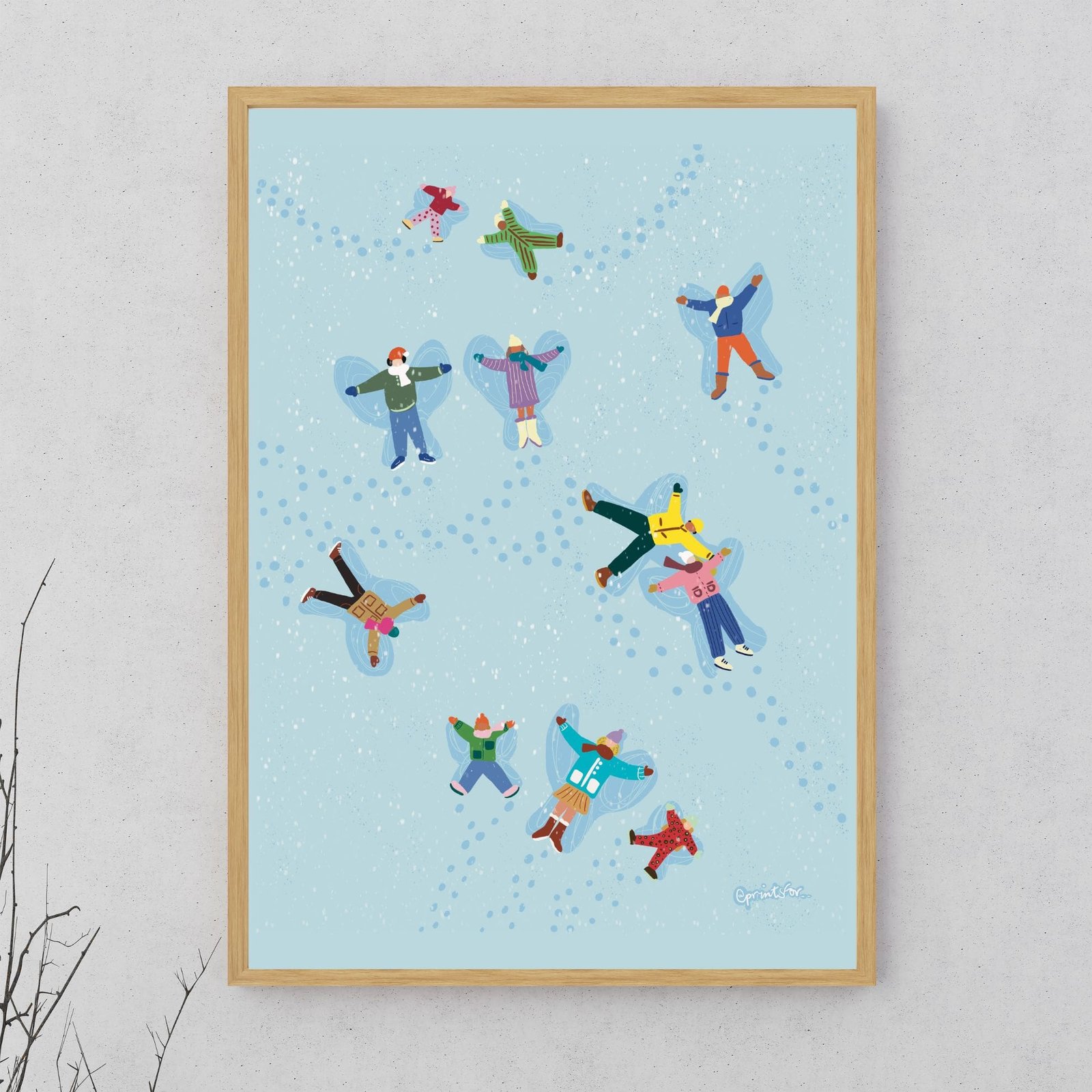 Celebrate warmth, friendship, and the quiet magic of winter with the Winter Glow art print. This heartwarming illustration shows people lying in the snow, enjoying the season with friends, family, and loved ones. It captures the beauty of slowing down, sharing laughter, and feeling connected, even in the coldest days.